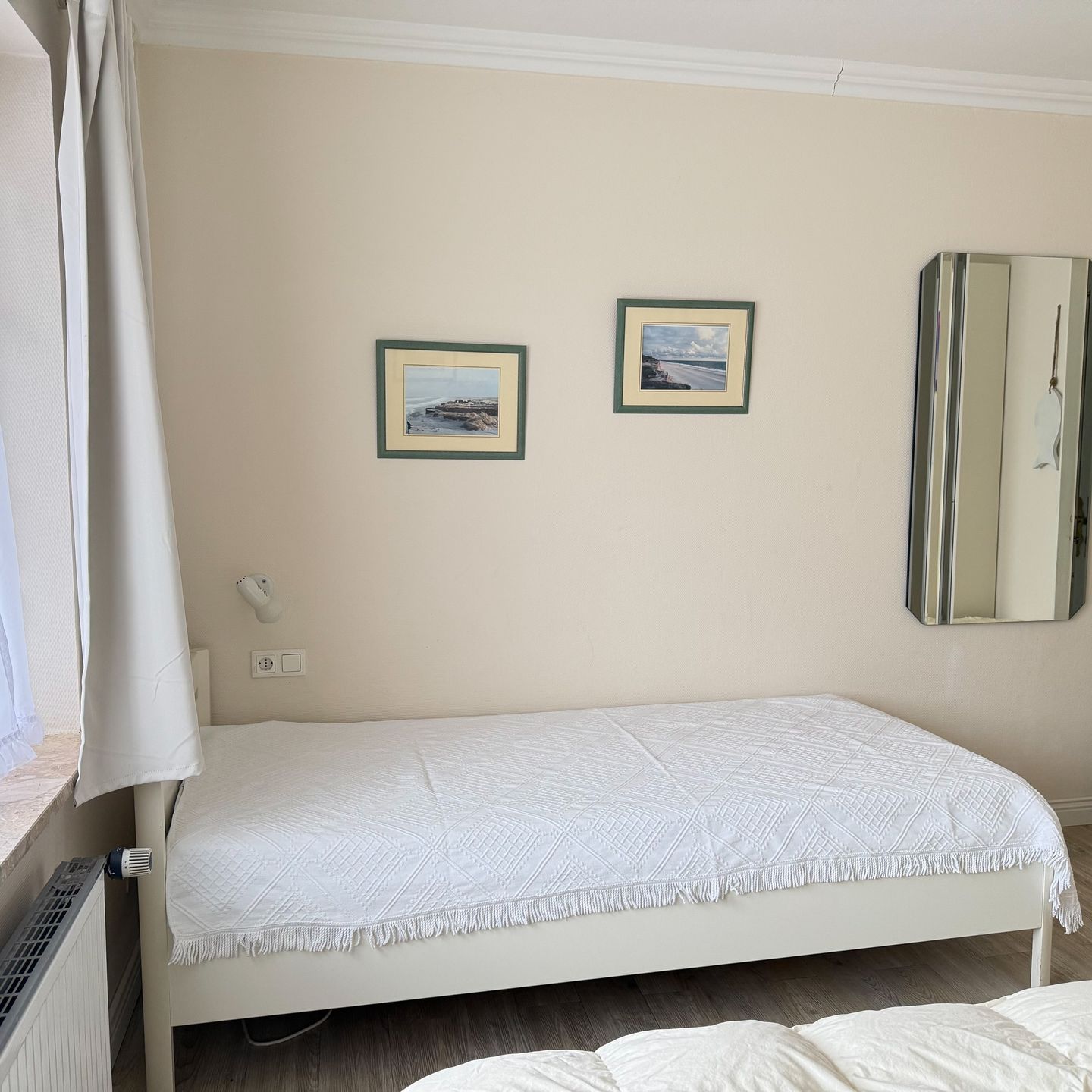 Das Schlafzimmer und die weiteren Ausstattungsmerkmale sind auf einen unkomplizierten Aufenthalt ausgelegt. Garderobe, Kommode und Staubsauger ergänzen die Einrichtung sinnvoll. Die Wohnung verfügt über Heizung sowie Sichtschutz an allen Fenstern. Das Badezimmer ist mit Dusche, WC, Waschbecken, Spiegel, Fenster und Haartrockner ausgestattet.