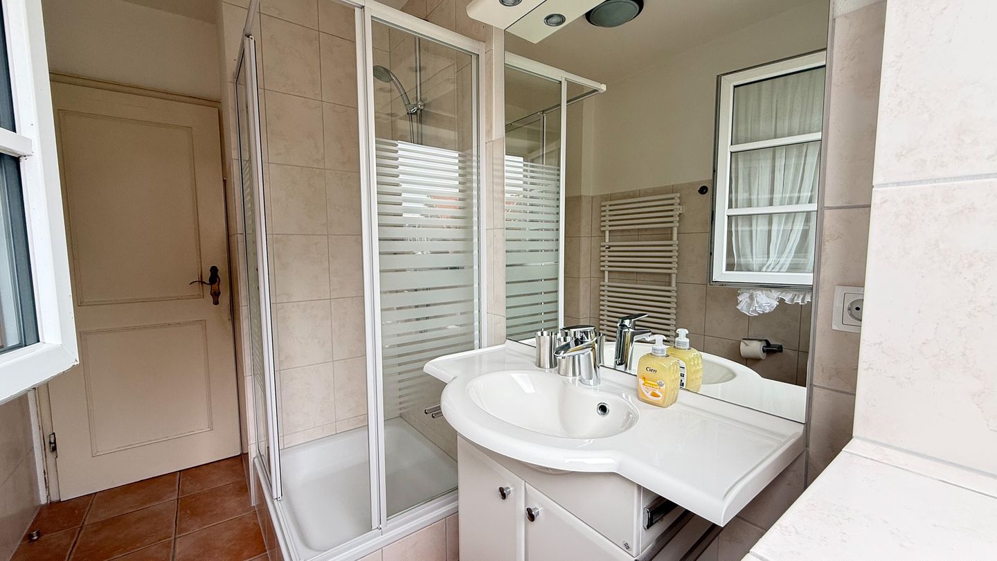 Im Wohnbereich schaffen Sofa und Esstisch eine angenehme Atmosphäre für gemeinsame Stunden. Ein TV und eine HiFi-Anlage sorgen für Unterhaltung. WLAN steht Ihnen ebenfalls zur Verfügung. Die offene Küche ist zum Wohnzimmer hin gestaltet und praktisch ausgestattet. Dazu gehören Kühlschrank, Ceranfeld, Herd, Spülmaschine, Kaffeemaschine, Wasserkocher, Toaster sowie Geschirr und Besteck. So können Sie sich im Urlaub flexibel selbst versorgen.