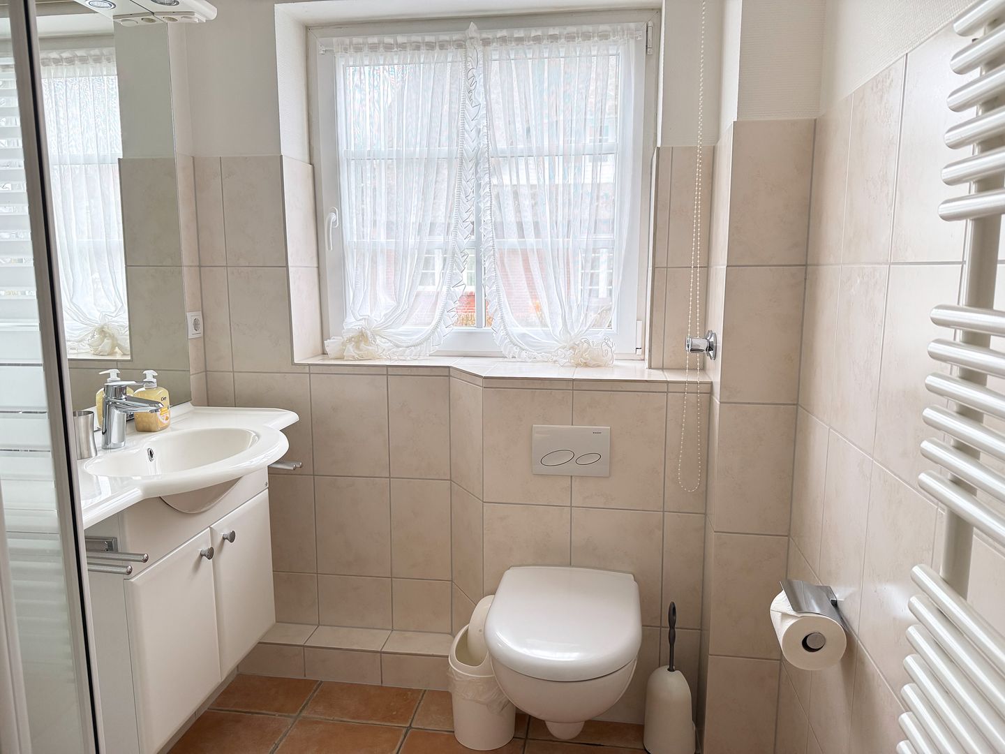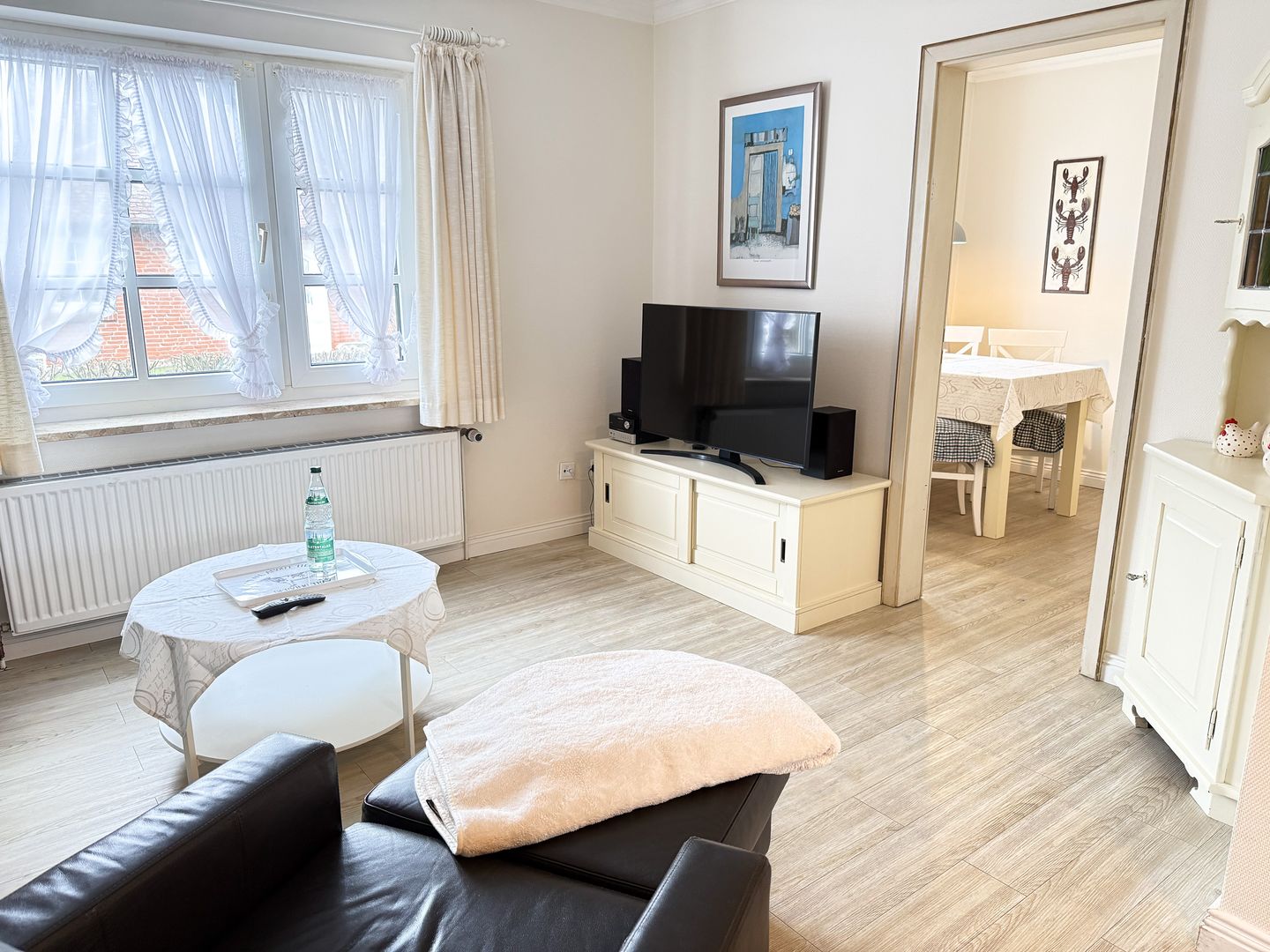 Auch für längere Aufenthalte bietet die Unterkunft praktische Vorteile, denn Waschmaschine und Trockner stehen gemeinschaftlich zur Nutzung bereit. Im Außenbereich laden Gartenmöbel und ein Strandkorb dazu ein, die frische Nordseeluft entspannt zu genießen. Die historische und zugleich romantische Umgebung verleiht dem Aufenthalt einen besonderen Rahmen.