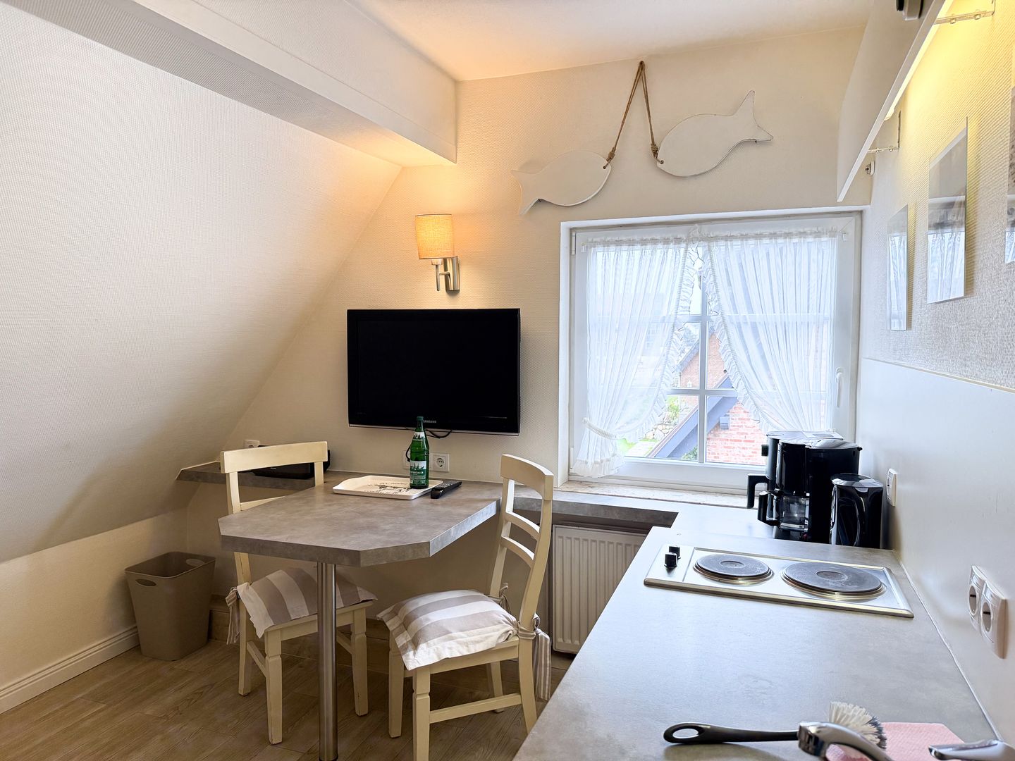 Willkommen in Haus Inselfriede No. 3 Ekke Nekkepen, einer gemütlichen Nichtraucherwohnung in Westerland auf Sylt, Steinmannstraße 57. Die 35 m² große Unterkunft befindet sich im 1. Stock und bietet zwei Zimmer, darunter ein Schlafzimmer mit Schlafmöglichkeiten für zwei Personen. Der Wohnbereich ist mit einer Sofaecke und einem Esstisch ausgestattet, sodass Sie gemeinsame Stunden komfortabel genießen können. Das Badezimmer gehört zur Unterkunft und ist vollständig nutzbar. Die Unterkunft richtet sich an Paare und ist haustierfreundlich. Es handelt sich um eine Nichtraucherunterkunft, entsprechend finden Sie hier eine rauchfreie Umgebung vor. Sichern Sie sich Ihren Aufenthalt.